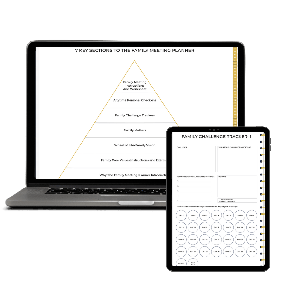 You can use the Digital Family Meeting Planner on your phone or computer using apps like Goodnotes, Evernote, or Adobe. Or you can print it out. It's easy to use!